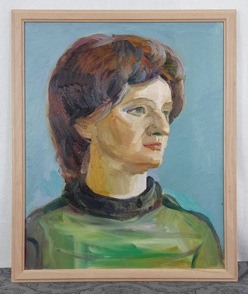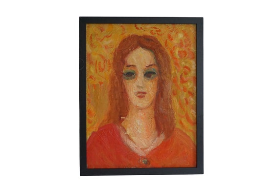 Mid Century Modern Woman Portrait Oil Painting French Red Etsy Israel